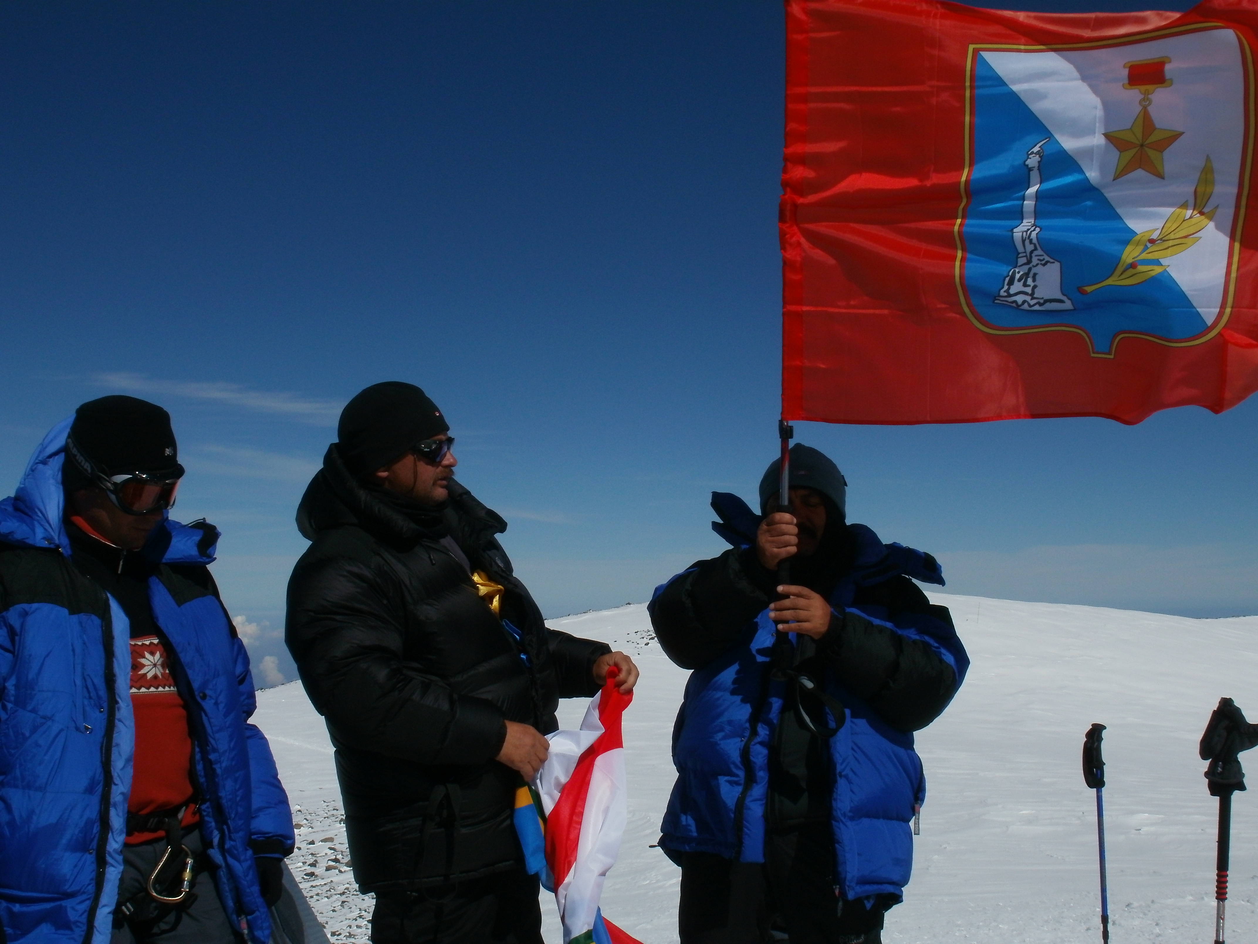 Флаг Севастополя на Восточной вершине Эльбруса Published 29 августа, 2010 at 4288 × 3216 in Фотоотчёт о восхождении на Эльбрус 27/08/2010 ← Назад Далее → Флаг Севастополя на Восточной вершине Эльбруса Флаг Севастополя на Восточной вершине Эльбруса