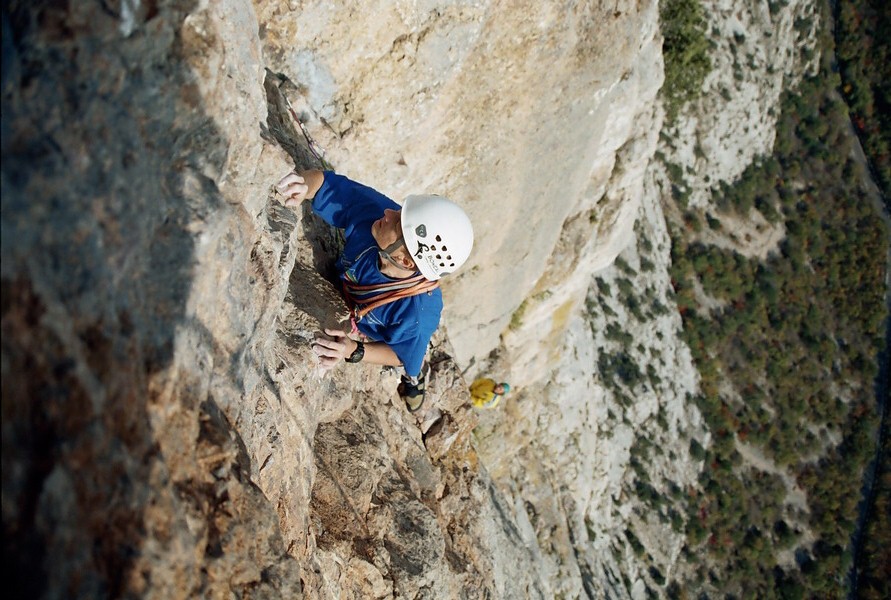Сегодня после обеда ходил на «Рыжий угол» на Форканте. В первый раз после того как на первой верёвке срубили болты, а для второй верёвки добавили альтернативный ход. Начали в три часа, когда первая верёвка погрузилась в тень.