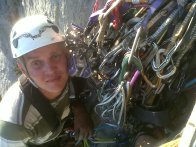 Только что компания москвичей собиралась пролезть маршрут по Северо-восточному ребру Паруса, который мы оборудовали в 2011 году к соревнованиям спасательных отрядов. 70 метров приятного лазания… Все в прошлом. Ушки от болтов скручены.