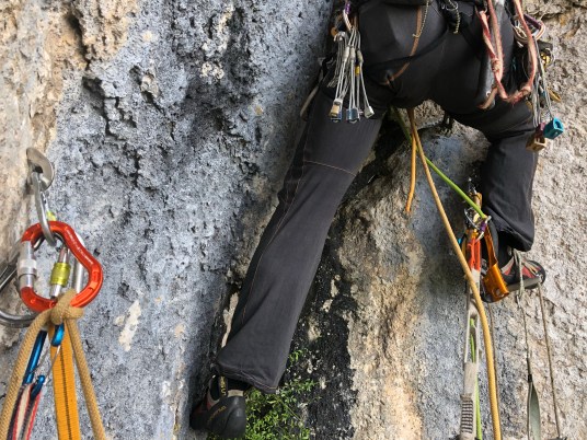 Вчера мы с Сашей Л. поставили 12-миллиметровые анкеры из нержавеющей стали на пунктах страховки на всех ключевых участках маршрута «Пьяный угол», слегка почистили его от камней. Лезли снизу-вверх, как полагается. Это было второе прохождение маршрута, спустя пять лет после первопрохода. Сделали, сколько было заряда батарей и времени, примерно 2/3 маршрута, спустились по пути подъёма по свежим станциям. Бур со строительного рынка — это случайное вынужденное зло.