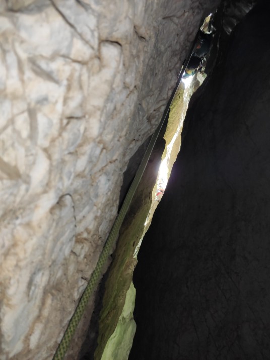 Хотя ключом маршрута является участок R1-R2, визитной карточкой маршрута является участок R3-R4 — 40-метровый вертикальный камин со скальной пробкой посередине. Камин очень глубокий, и чтобы его пролезть нужно сначала войти в него на 20 метров, практически попрощавшись с солнечным светом.