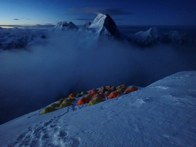 Команда начала разваливаться ещё 26 июля, когда появились предложения отказаться от штурма вершины или, всё-таки, пойти на штурм из Лагеря 3 на высоте 7300, без установки Лагеря 4. Решение было продиктовано сложными погодными условиями и необходимостью попытаться достичь вершины именно 27 утром июля, так как погодное окно «закрывалось» к вечеру этого дня. В какой-то момент мой напарник Ронан даже разослал сообщения своим контактам о том, что мы собираемся уходить вниз. Однако, нам удалось собрать сборную перильную команду, которая вышла на штурм в 15:00, а также уговорить остальных членов команды пойти на штурм ночью на штурм.