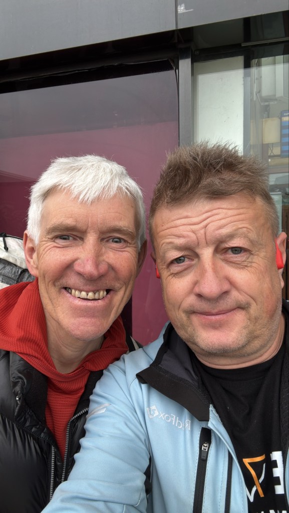 На фото мы с Валерием Бабановым — моим напарником по экспедиции. Валерий — известный российский альпинист, соло-альпинист, обладатель двух (почти трёх) премий «Золотых Ледорубов». Ещё с нами был известный азербайджанский альпинист Исрафил Ашурлы, но что-то я не не нашёл ни одного фото, где мы втроём. Ну а уже в базовом лагере к нам ситуативно присоединились ещё несколько альпинистов из разных стран: Стефи из Андорры, Чарльз из Канады и Владимир Афанасьев из России, после того как его напарник вынужденно прервал участие в экапедиции. Получилось неплохо.